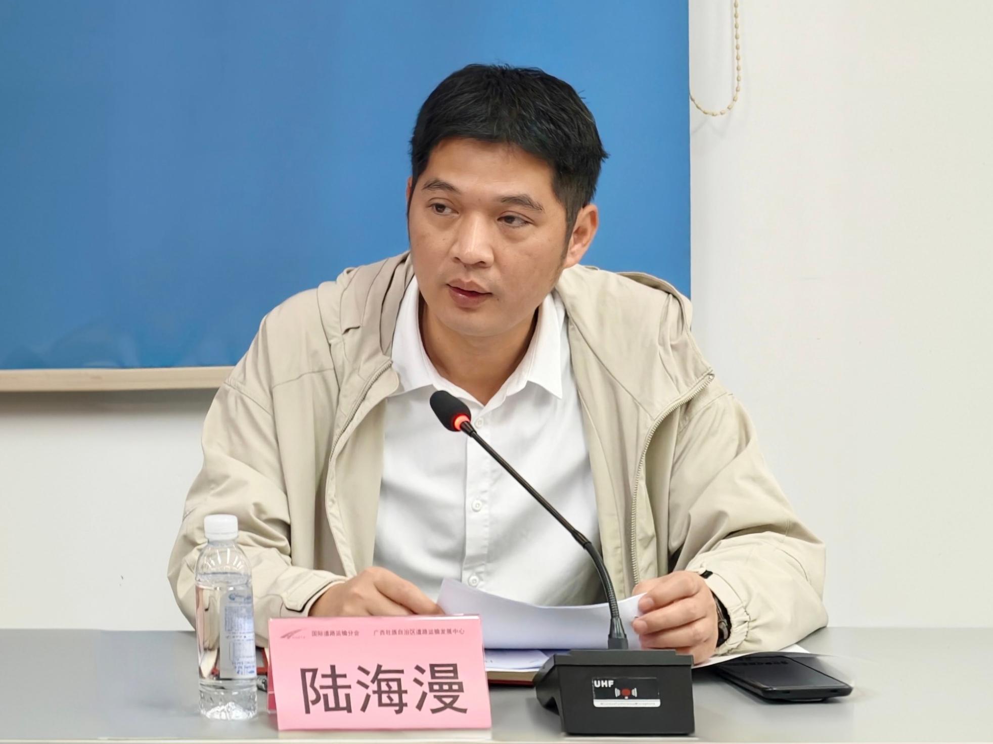自治区道路运输发展中心国际道路运输科科长陆海漫对分会工作给予充分肯定。他围绕自治区交通运输厅“十五五”规划、2026年全区交通运输工作会议及全区道路运输工作会议相关内容展开解读,指出2026年是广西加快建设交通强区、全面融入国内国际双循环格局的攻坚之年。作为我国唯一与东盟国家陆海相邻的省份,广西在“一带一路”建设、西部陆海新通道发展以及中国—东盟命运共同体构建中具有不可替代的区位优势。国际道路运输不仅是物流通道,更是民心相通的桥梁、经贸合作的纽带。政府部门将持续优化营商环境,强化科技赋能以提升通关便利化水平,不断完善基础设施建设,为国际道路运输企业提供更高效、便捷的服务。同时,他鼓励企业积极适应政策变化,强化安全管理,提升服务质量,共同维护良好市场秩序。在政策宣导环节,他详细介绍了国际道路运输管理相关政策、国际道路运输资质备案办理流程及跨境运输注意事项等内容,为企业合规经营提供明确指引。