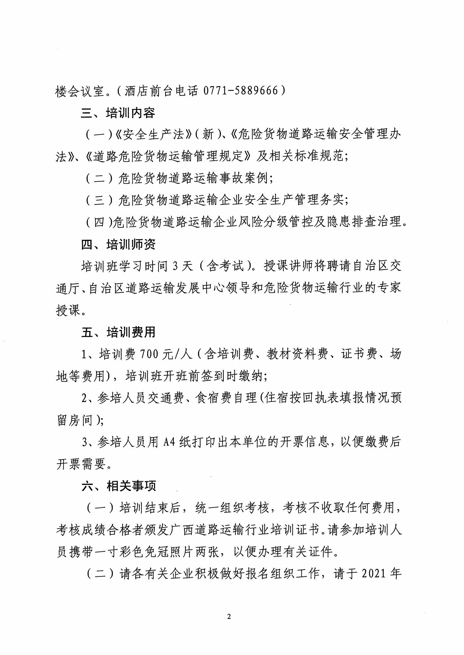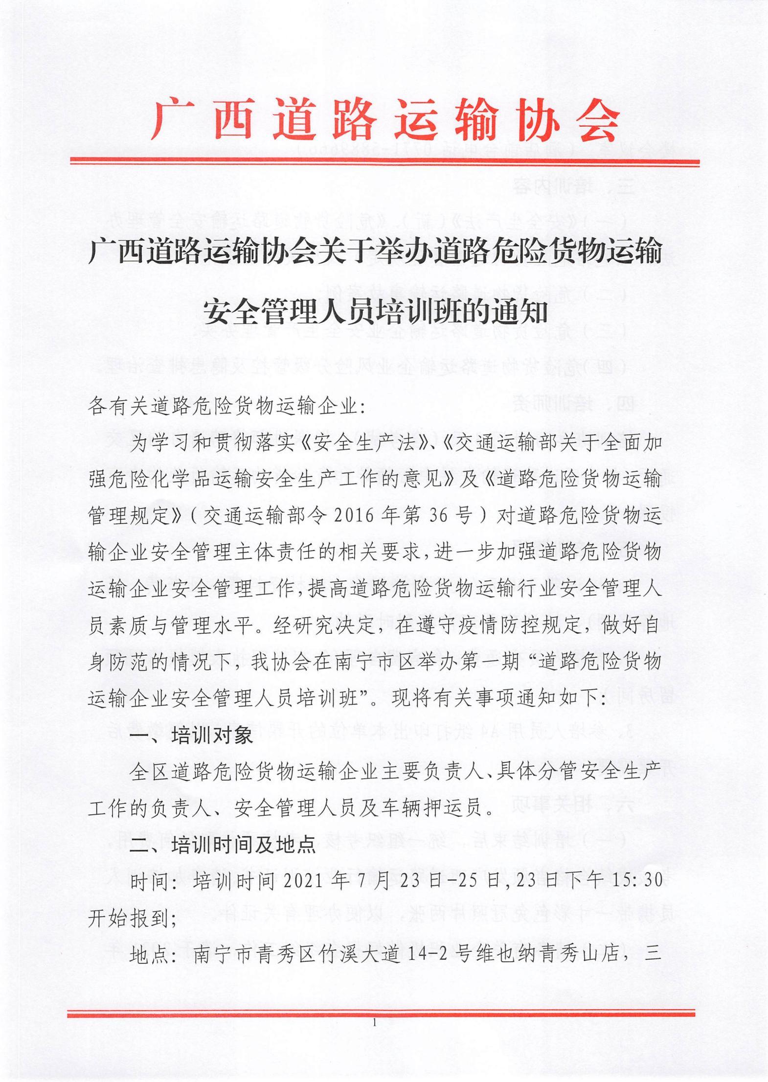 广西道路运输协会关于举办道路危险货物运输安全管理人员培训班的通知